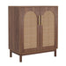 Sideboard Buffet Cabinet With Handwoven Rattan Doors (Set of 2) - Dark Brown