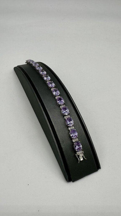 SS LG OVAL PUPLE CZ TENNIS BRACELET