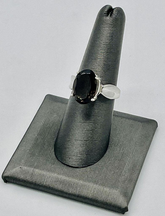 SS OVAL SMOKEY QUARTZ RING