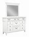 Complete your relaxing retreat with the Stoney Creek bedroom collection. This traditional bedroom set offers large-scale designs with a textured, antique white finish. Antiqued, blackened metal hardware and tapered leg detailing adds a little modern farmhouse charm to your home.