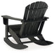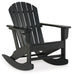 Add cottage-quaint charm to your outdoor oasis with this rocking chair in black. Made of MEGA-TUFF® high-density polyethylene material, it’s sure to weather the seasons beautifully. Designed to shed rainwater, the chair’s slatted styling and classic Adirondack design provide exceptional form and function.