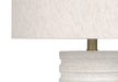 - Stylish Design: This 28" cylinder-shaped table lamp features a cream resin base with a ridged design and an ivory linen fabric drum shade, topped with a chic gold finial, making it a fashionable addition to any room.