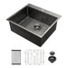 Drop In Kitchen Sink Topmount 16 Gauge Deep Single Bowl Stainless Steel Basin - Black / Gray