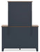 | Details | B414-53: Made with hardwood solids, mindi wood veneer and MDF substrates, Two-tone finish features a dark slate blue with a light brown wood-tone top, ¼" bolts (not included) are needed to attach headboard to your existing bed frame, Assembly required, B414B1: Includes dresser and mirror, Made with hardwood solids, mindi wood veneer and MDF substrates, Two-tone finish features a dark slate blue with light brown wood-tone top, Nickel-tone metal knobs, 6 drawers with fully finished interior, dovetail construction and heavy duty ball-bearing side glides, Mirror attaches to back of dresser, B414-45: Made with hardwood solids, mindi wood veneer and MDF substrates, Two-tone finish features a dark slate blue with a light brown wood-tone top, Nickel-tone metal knobs, 4 drawers with fully finished interior, dovetail construction and heavy duty ball-bearing side glides, B414-92: Made with hardwood solids, mindi wood veneer and MDF substrates, Two-tone finish features a dark slate blue with a light brown wood-tone top, Nickel-tone metal knobs, 2 drawers with fully finished interior, dovetail construction and heavy duty ball-bearing side glides, | |