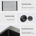 Kitchen Sink 23" X 18" X 10" Undermount Single Bowl 16 Gauge - Gunmetal Black