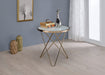 - Striking Metal Base: Its overlapped "V" shape metal base is made from round metal tubing with a champagne finish, exuding elegance and modernity.