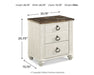 | Details | Made of engineered wood (MDF/particleboard) and decorative laminate, Whitewash replicated worn through paint with authentic touch, Replicated wood grained block pattern with authentic touch, Nightstand beautifully suits coastal cottage and shabby chic decor, 2 smooth-gliding drawers, Antiqued brass-tone ring-pull hardware, 2 slim-profile USB charging ports, Power cord included; UL Listed, Assembly required | |