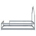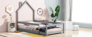 Twin Size Wood Bed With House-Shaped Headboard Floor Bed With Fences - Gray