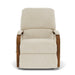 Beautiful oak arm accentuates a curvy frame. The Woodlawn recliner spotlights a beautifully curved oak arm topped off with a soft upholstered arm cap. The comfort of the fully padded footrest, divided back cushions, and refined scaling make Woodlawn a great recliner for any setting. A power reclining mechanism lets you change angles effortlessly from an upright to a fully reclined position with the touch of a button.